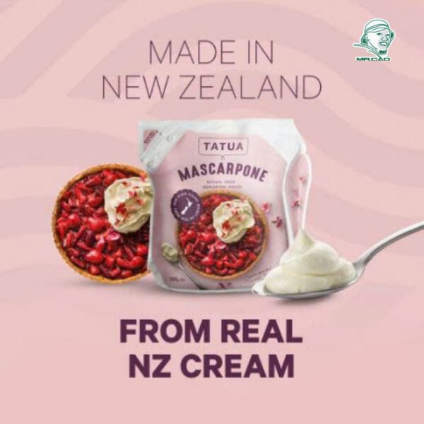 Phô mai Mascarpone Tatua có bán tại MrCao Mart là loại phô mai tươi, mềm mịn, màu trắng và vị nhạt, được làm từ quá trình tách kem khỏi sữa. Đây là thành phần không thể thiếu trong các món tráng miệng tiramisu và món mặn của ẩm thực Ý, giúp tăng độ béo mịn mà vẫn giữ được hương vị nguyên bản của món ăn.