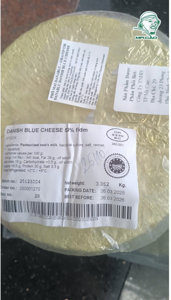BLUE CHEESE GRAND’OR 3kg có bán tại MrCao Mart là một loại phô mai xanh (blue cheese) cao cấp của thương hiệu Grand’Or từ Đan Mạch, được đóng gói dạng khối 3kg.