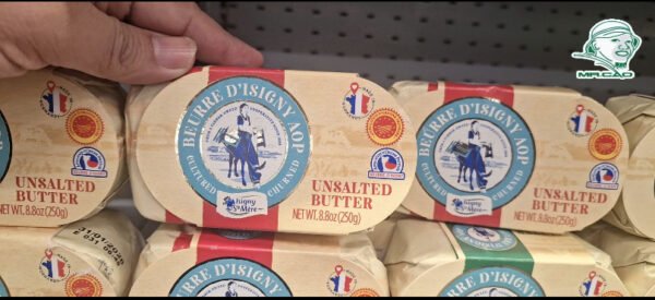 AOP Baratte/Churned Unsalted Butter 250g là loại bơ lạt cao cấp, có nguồn gốc Pháp có bán tại Mrcao Mart được sản xuất theo phương pháp truyền thống “baratte” (quay/vắt), chuẩn AOP (Chỉ dẫn Xuất xứ được Bảo hộ), có màu vàng nhạt tự nhiên, kết cấu kem mịn, hương thơm bơ sữa tự nhiên, thường dùng để ăn kèm bánh mì, nấu ăn & làm bánh.
