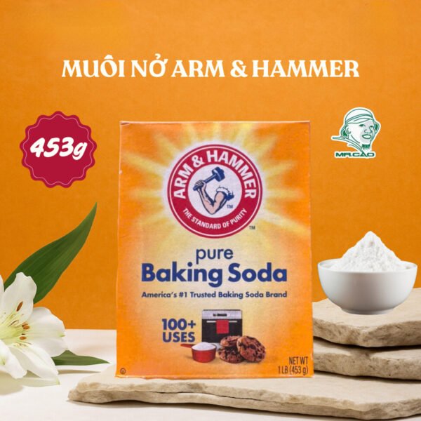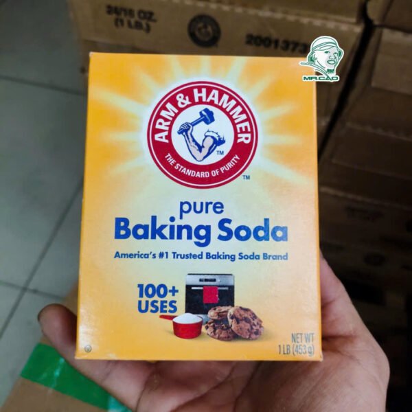 Baking soda Arm & Hammer USA 453g có bán tại MrCao Mart là bột baking soda (natri bicacbonat – \(NaHCO_{3}\)) tinh khiết từ Mỹ, có nhiều công dụng đa năng như làm bánh, tẩy rửa, khử mùi, chăm sóc sức khỏe và làm đẹp. Đây là sản phẩm từ thương hiệu Arm & Hammer nổi tiếng của Mỹ.