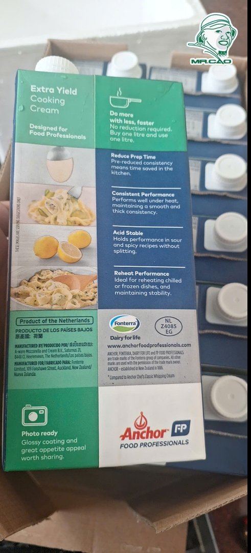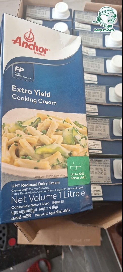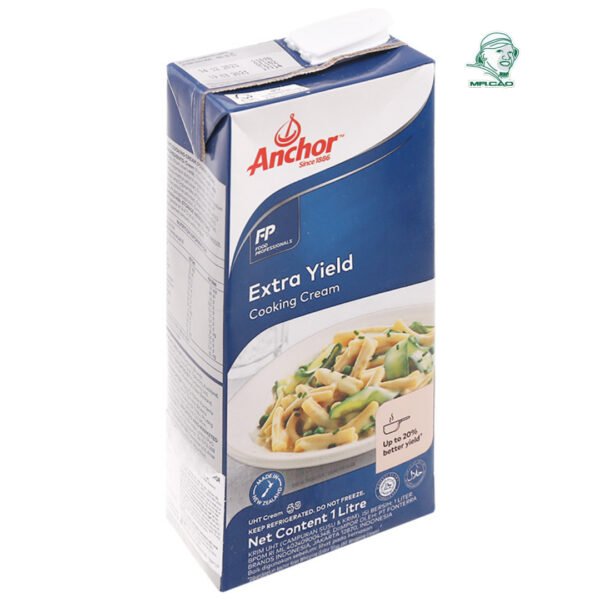 Kem nấu Anchor 1L có bán tại MrCao Mart là sản phẩm kem sữa tươi tiệt trùng có hàm lượng béo cao, dùng để chế biến các món ăn Âu, món tráng miệng và bánh ngọt. Sản phẩm này được làm từ sữa bò tươi New Zealand, thích hợp cho cả việc nấu sốt, làm súp và trang trí bánh.