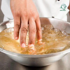 - Vắt ráo: Vớt lá gelatin đã mềm ra và vắt nhẹ cho ráo bớt nước.