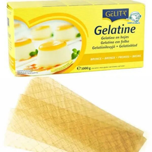 Lá Gelatine Gelita Silver 1kg có bán tại Mrcao Mart là một loại nguyên liệu thực phẩm dạng lá, được làm từ collagen chiết xuất từ da động vật, có tác dụng làm đông, tạo độ dai và kết cấu cho các món ăn, đặc biệt là món tráng miệng như thạch, mousse, panna cotta. Sản phẩm có xuất xứ từ Đức, 100% tự nhiên, không mùi vị và dễ sử dụng vì có thể đong đếm bằng số lá thay vì cân nặng.