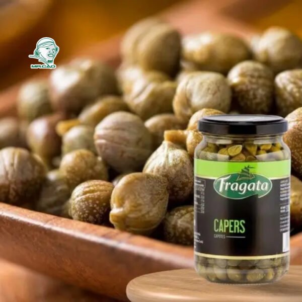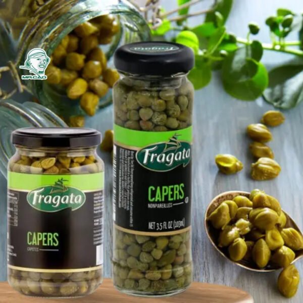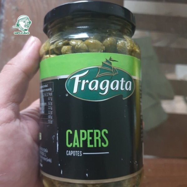 Nụ Bạch Hoa ngâm (Capers ngâm) hiệu Fragata là sản phẩm gia vị truyền thống từ Tây Ban Nha đươc phân phối bởi MrCao Mart, có vị chua mặn đặc trưng và độ giòn, được ngâm trong giấm rượu vang và muối biển.