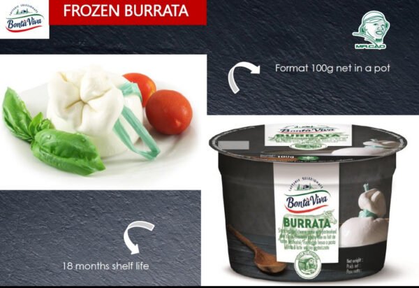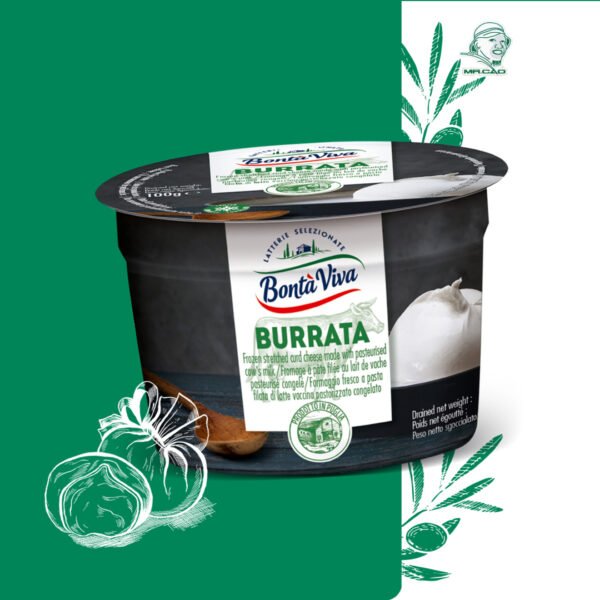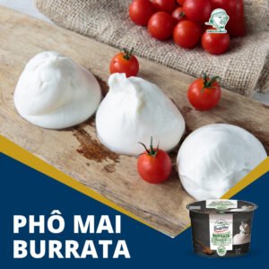 Phô mai burrata Bonta Viva có bán tại Mrcao Mart là một loại phô mai tươi cao cấp của Ý, có lớp vỏ làm từ mozzarella và nhân bên trong là hỗn hợp kem sữa béo ngậy, được tạo thành từ mozzarella và kem tươi. Khi cắt ra, lớp kem mịn sẽ chảy ra ngoài tạo nên sự hấp dẫn.