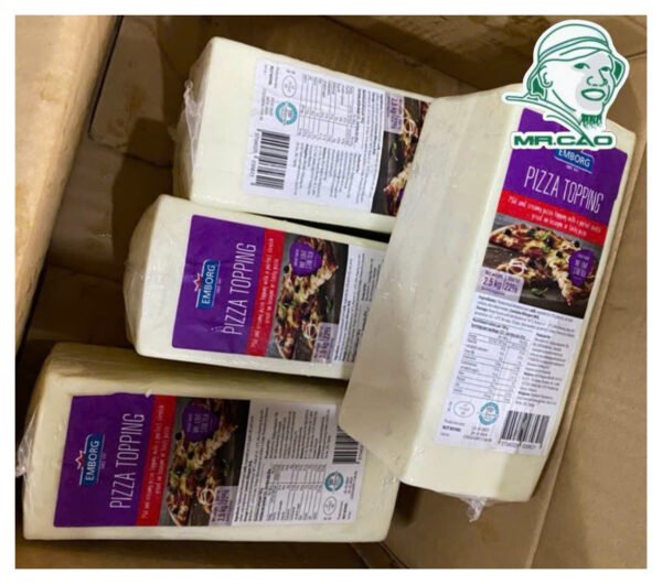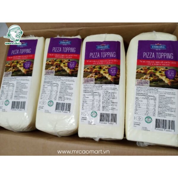 Pizza Topping Emborg được phân phối bởi MrCao Mart là một sản phẩm phô mai thương hiệu Emborg (Đan Mạch) được thiết kế đặc biệt để làm nguyên liệu cho các món ăn, đặc biệt là pizza. Sản phẩm này thường ở dạng như phô mai mozzarella nguyên khối hoặc bào sợi, có kết cấu mềm dẻo, vị béo nhẹ, khả năng tan chảy và kéo sợi tốt khi làm nóng, giúp tăng thêm hương vị hấp dẫn cho món ăn.