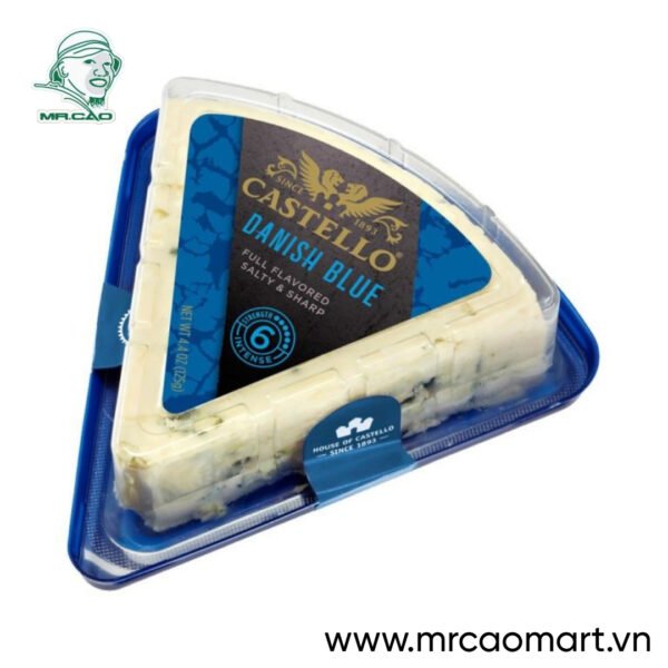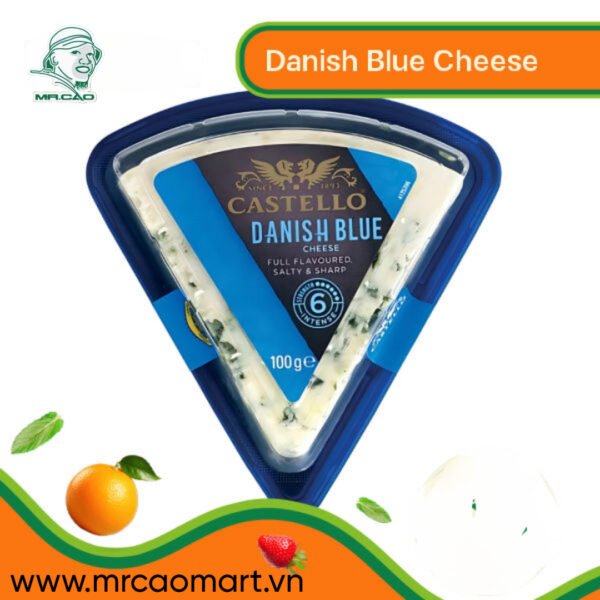 Phô mai Castello Danish Blue 100g được phân phối bởi MrCao Mart là loại phô mai xanh được sản xuất tại Đan Mạch, nổi tiếng với hương vị béo ngậy, đậm đà cùng vị mặn đặc trưng nhờ quá trình lên men tự nhiên.